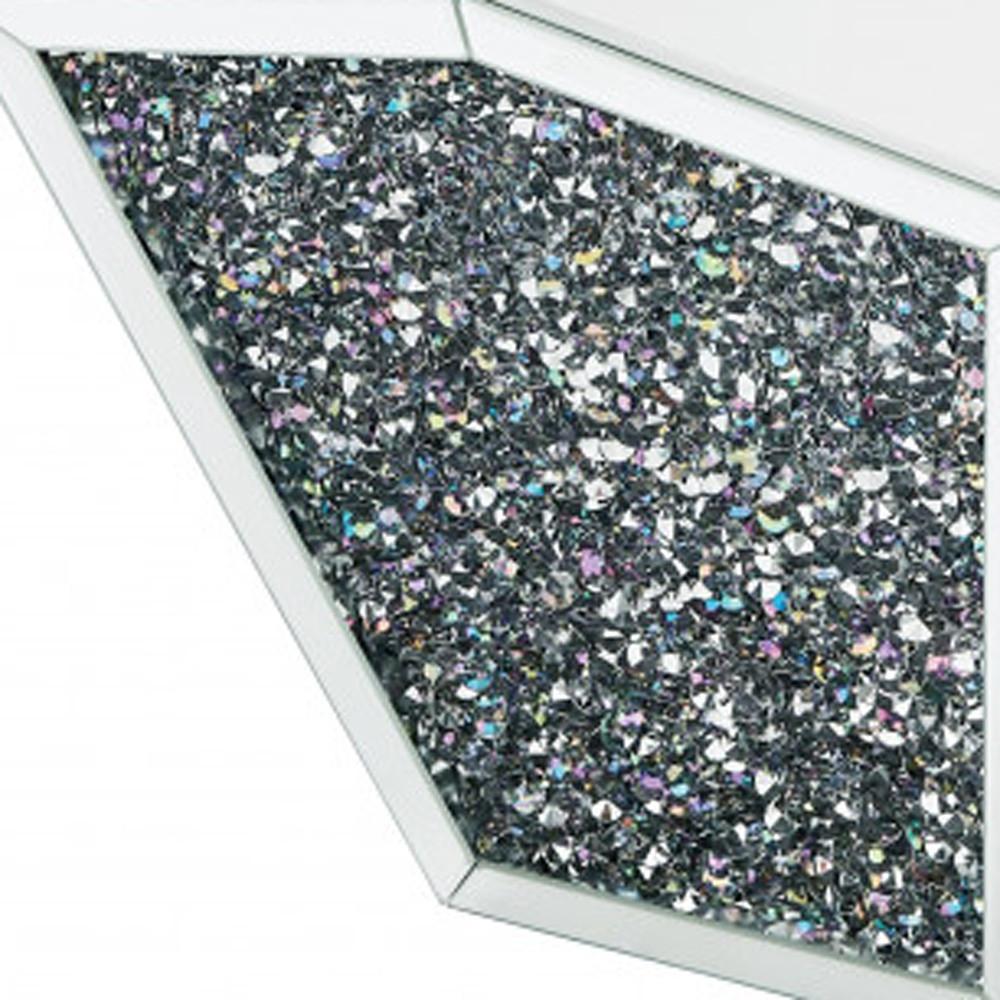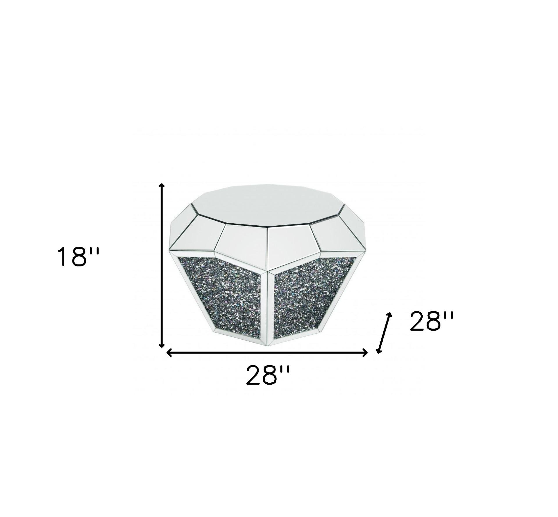 Give your living room, family room, or office the perfect anchor piece with this 28″ silver and clear glass and manufactured wood round mirrored coffee table. The base of this table is made from manufactured wood in a silver color that creates a good looking visual contrast to the clear glass tabletop. Reflective pieces of mirrored glass give this table a glamorous and unique look. This round table features a fresh and stylish shape to give your room a visually pleasing accent. If you’re looking for something that can fit into a living area, bedroom, or office, this coffee table is for you. This coffee table is the sturdy, reliable and stylish answer to your living room needs. 18″ H x 28″ W x 28″ D