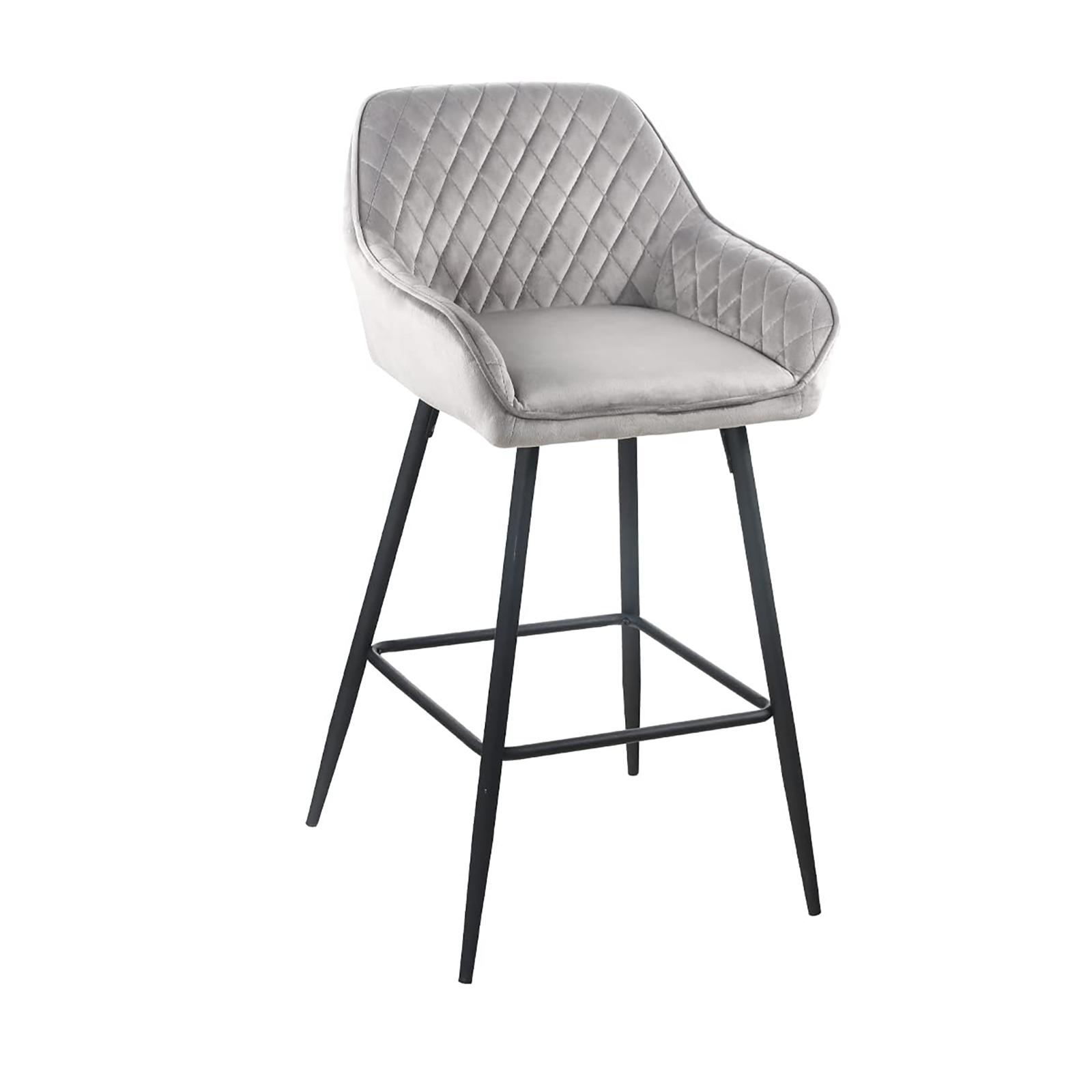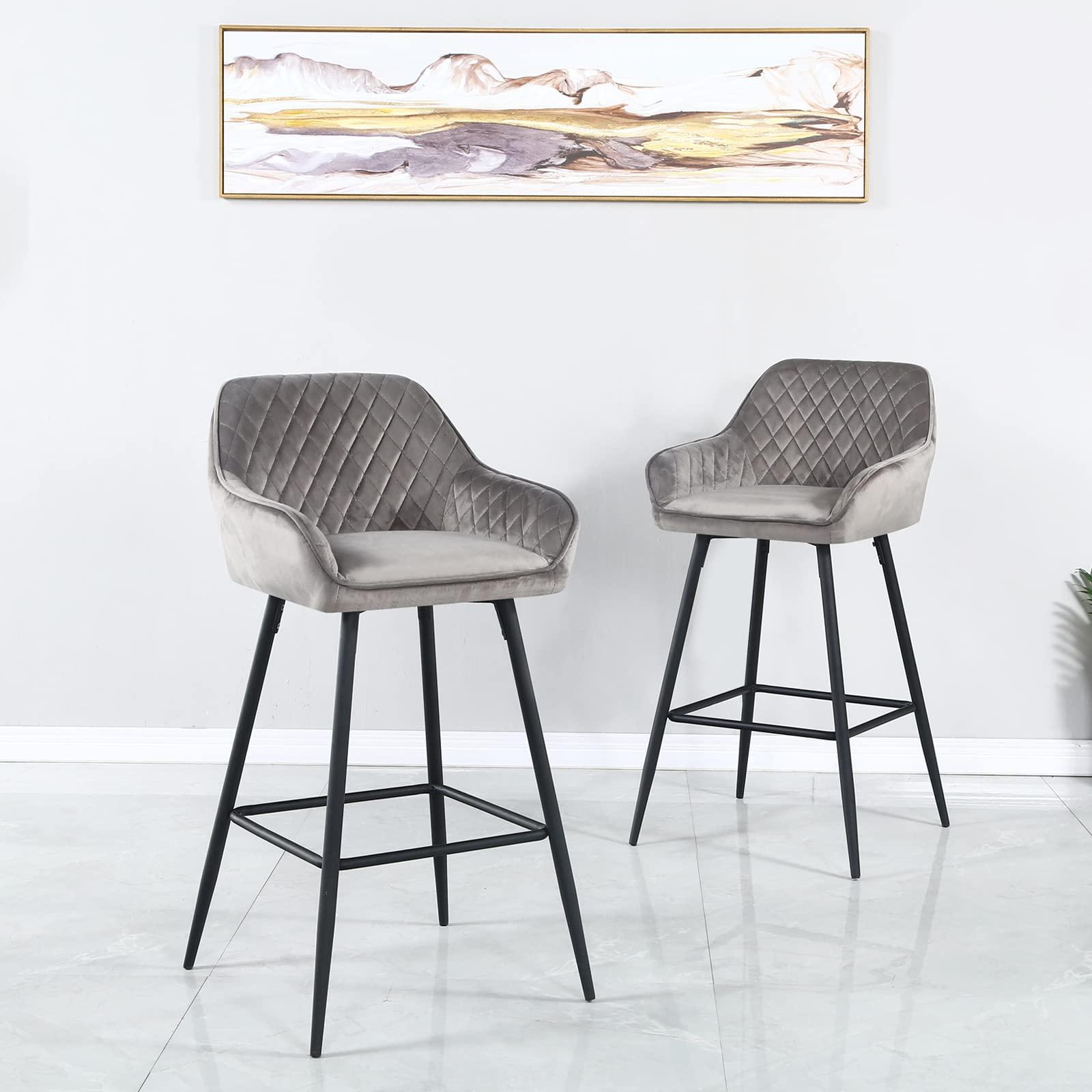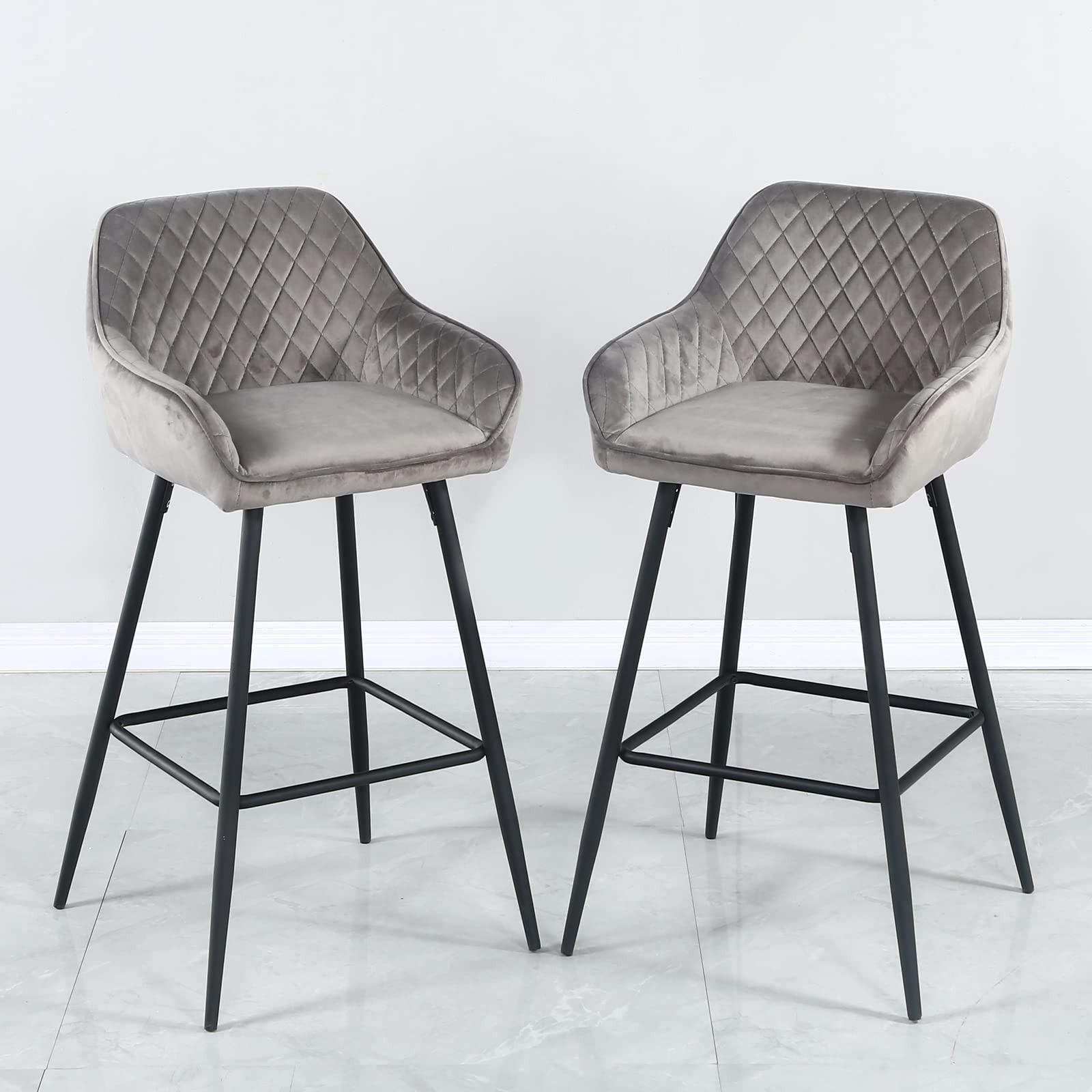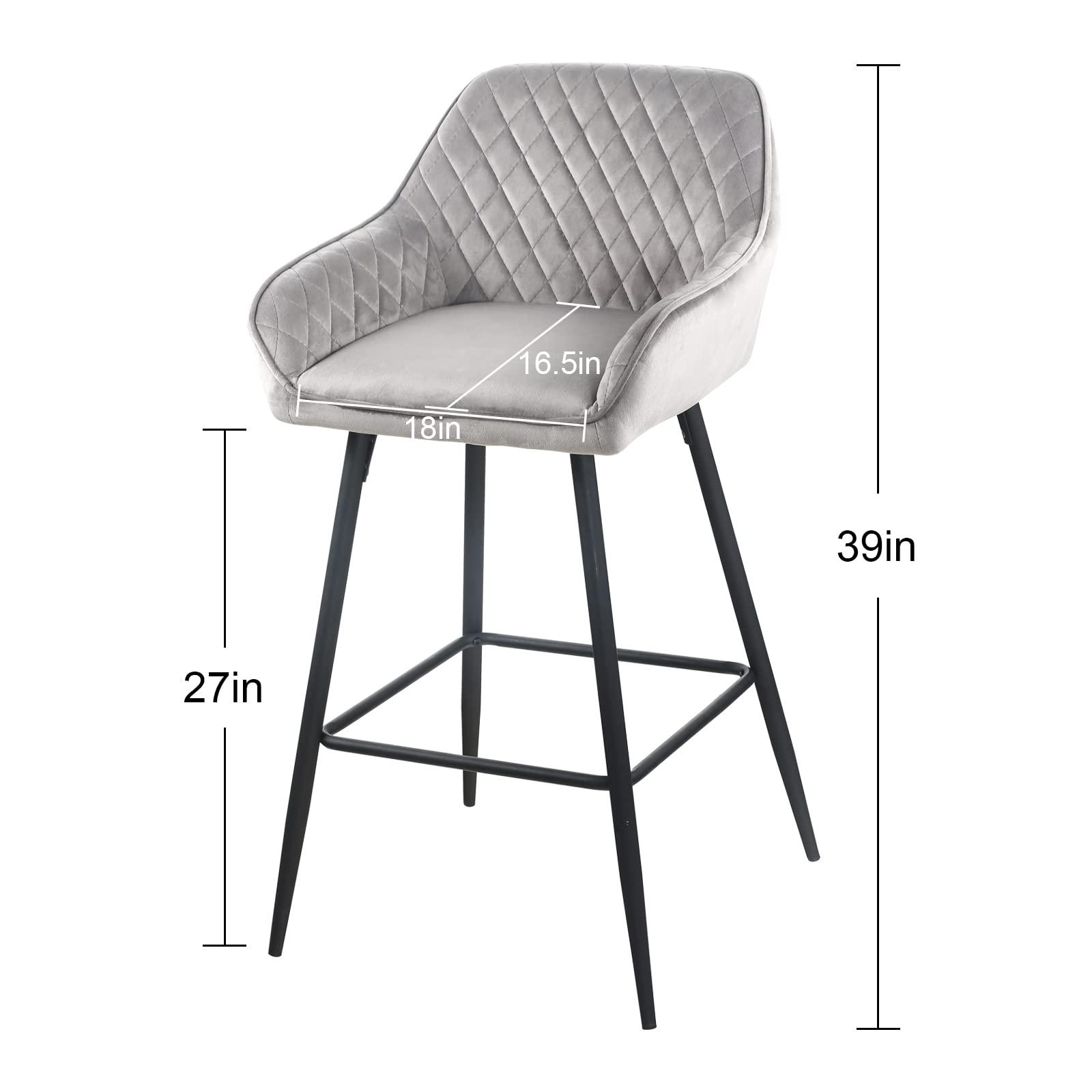 Comfortable enough to sit in for awhile, this set of two 36″ gray velvet and black iron bar height chairs will transcend the look of your room. The black coloration of the high quality iron base marries nicely with the gray velvet seat. Not only good looking and stylish, this chair features a square shaped seat and a full back for the ultimate in comfort and enjoyment. This stool will look great in your dining room, kitchen, bar, or recreation room. 36.2″ H x 19.7″ W x 16.2″ D